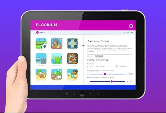 Use the tablet included with Floorium to manage your interactive floor: configure its settings, start games and educational modes and change their options. The tablet is very convenient so we have been using it for over 6 years already. We include it in our top of the line product iSandBOX, the interactive sandbox.